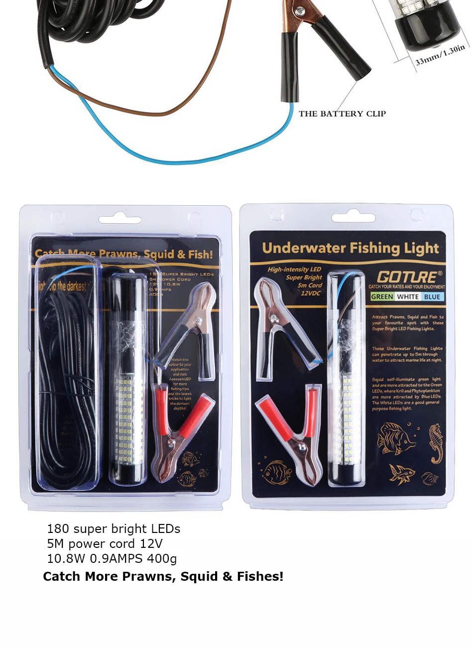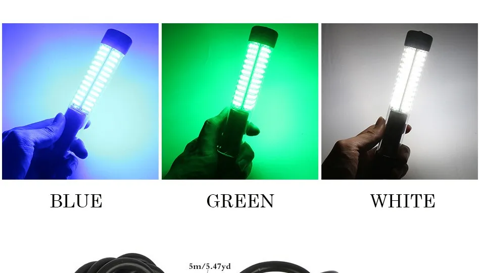 Goture Fishing Light 12V 10.8w LEDs Submersible With 5m/ 5.47yd Cord White, Blue, Green Fishing Accessories