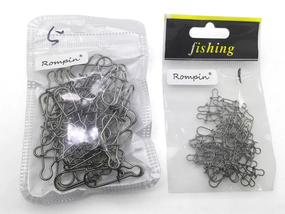 Rompin 50pcs Hooked Snap Stainless Steel Fishing Barrel Swivel Safety Snaps Hook Lure Accessories Connector Snap Pesca