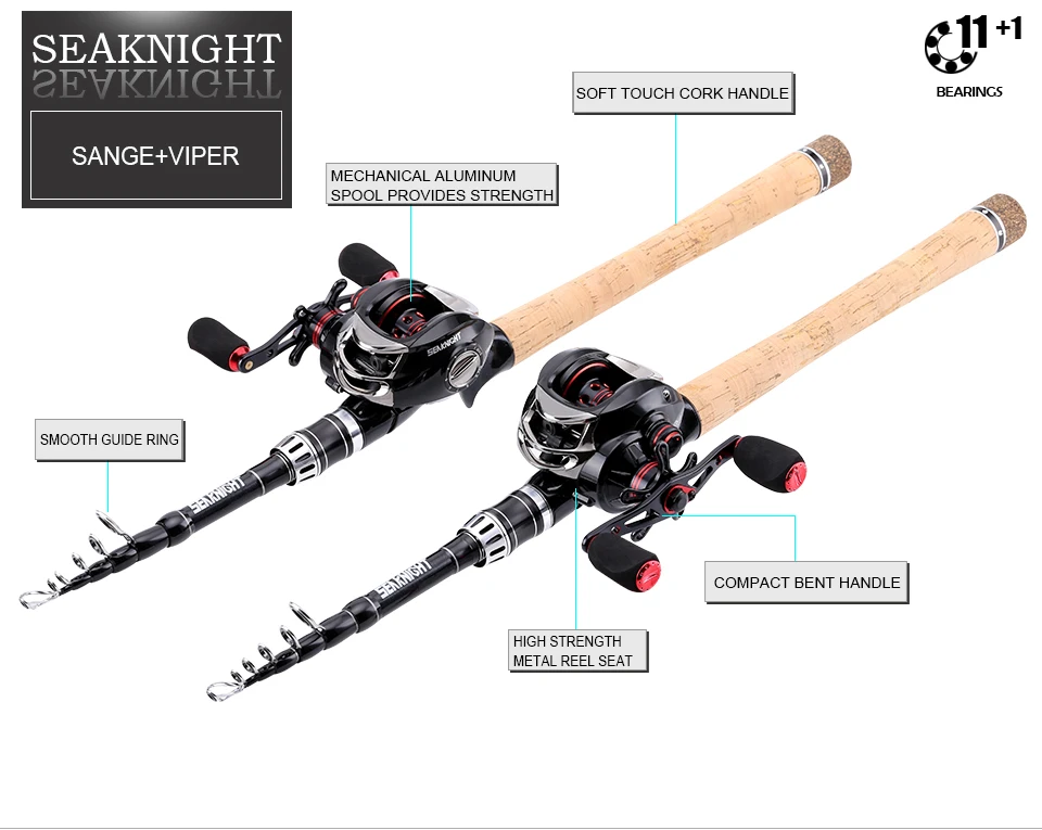SeaKnight 11+1BB Baitcasting Reel VIPER1200/1200HG 6.3:1/7.0:1 Fishing Wheel+ 2.4M Lure Casting Rod Fishing Rods Reels Combo Reel Features: 1. 11 Ball Bearings + 1 Roller Bearings Provides Smooth Operation. 2. Machined Aluminum Spool Provides Strength without Adding Excess Weight. 3. Carbon Fiber Drag System Provides Power Drag Performance. 4. Compact Bent Handle and Star Provide a More Ergonomic Design. 5. Both Centrifugal & Magnetic Brake System Ensure a Better Control When Casting. Reel Details: VIPER | Weight: 210g | Gear Ratio: 6.3:1 | Bearings: 12BB | Max Drag: 7.5KG | Line Capacity(mm-M): 0.26-140; 0.28-120; 0.30-110 VIPER-HG | Weight: 210g | Gear Ratio: 7.0:1 | Bearings: 12BB | Max Drag: 7.5KG | Line Capacity(mm-M): 0.26-140; 0.28-120; 0.30-110 Rod Details: Sange 2.4M | Casting | 6 Sections | M Power | Lure W. 7-25g | Line W. 8-18LB | Weight: 144g Package List: 1pc * Fishing Reel; 1pc * Fishing Rod Note: We will sent your order by 2 packages to better protect the rod. We will give you 2 tracking number for your order. Thank you.