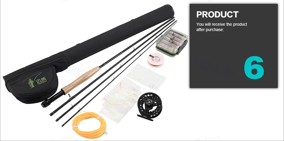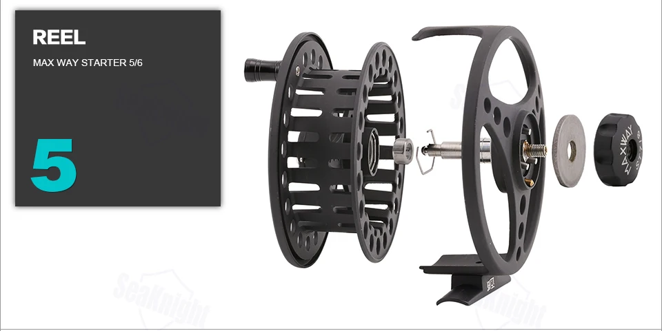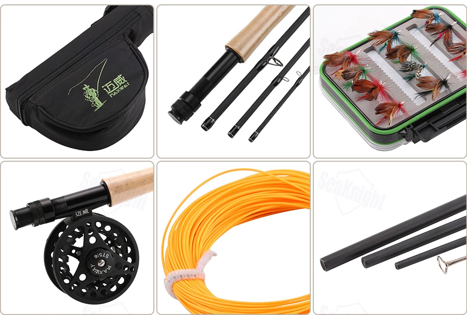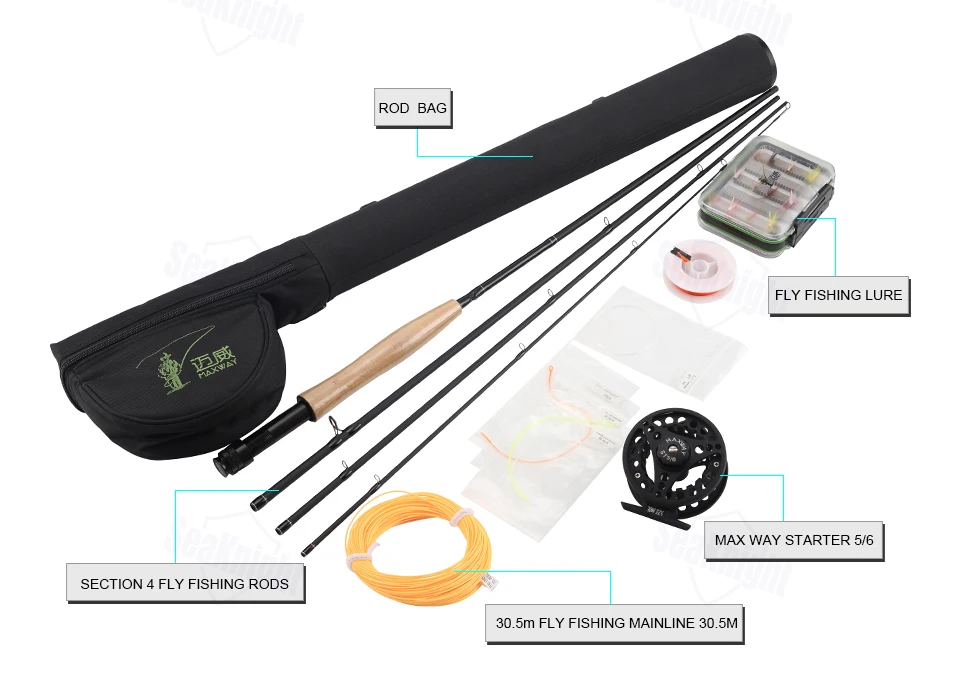 Brand: SeaKnight MAXWAY Rod Length:2.70 M Line Length: 30.5M Weight: 1100g Rod Section: 4 Sections Model: STARTER 5/6# Set Action: Fast Rod Material: Carbon Reel Model:STARTER 5/6 Quantity: 1 Set Packing: 1P * Fly Fishing Rod+Fly Reel+Fly Line+Fly Rod Bag+Fly Lure+Fly Lure Box