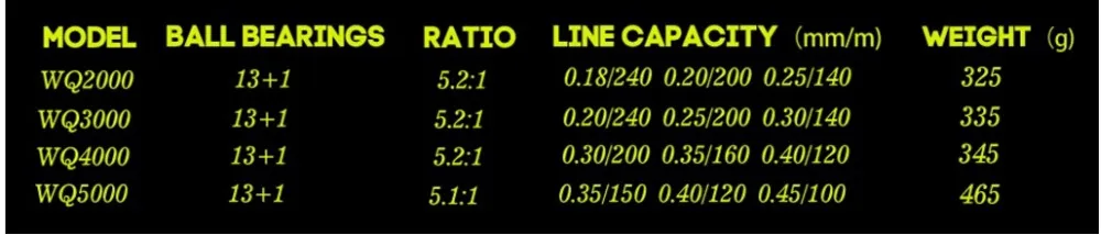 1.8M--- 1.8M Rod with WQ2000 Reel 2.1M--- 2.1M Rod with WQ3000 Reel 2.4M--- 2.4M Rod with WQ3000 Reel 2.7M--- 2.7M Rod with WQ4000 Reel 3.0M--- 3.0M Rod with WQ4000 Reel 3.6M--- 3.6M Rod with WQ5000 ReelRod And Reel Package Include: