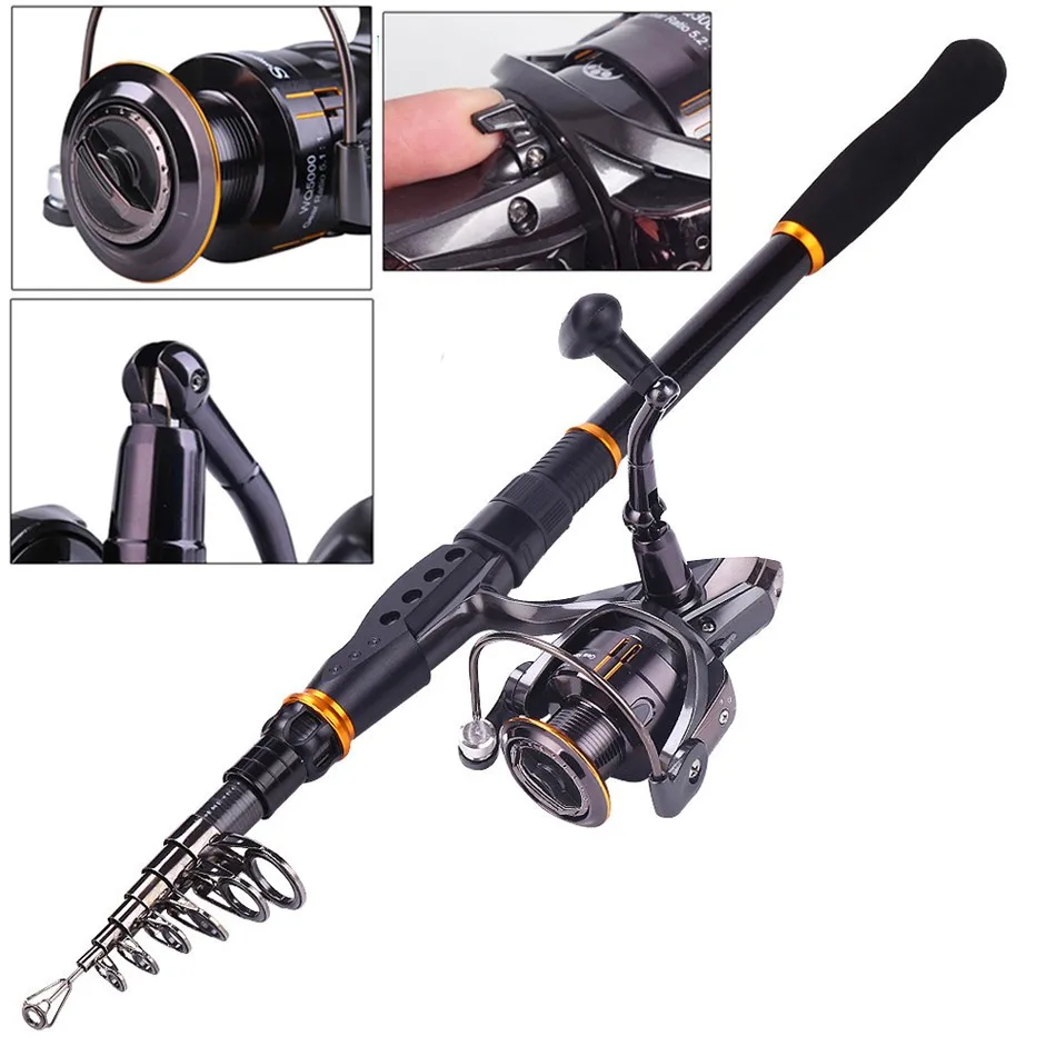 Sougayilang Fishing Rod Reel Combos Carbon Telescopic Fishing Pole with Fishing Reel Line Lures Combo Sea Fishing Rod Kit