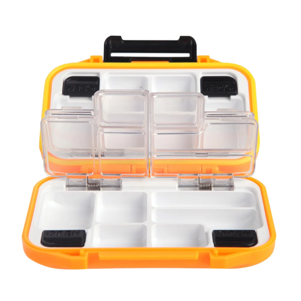 Waterproof ABS Fishing Box Hook 12 Compartments Storage Case Outdoor Fishing Swivels Lure Bait Tackle Tool Black/Orange